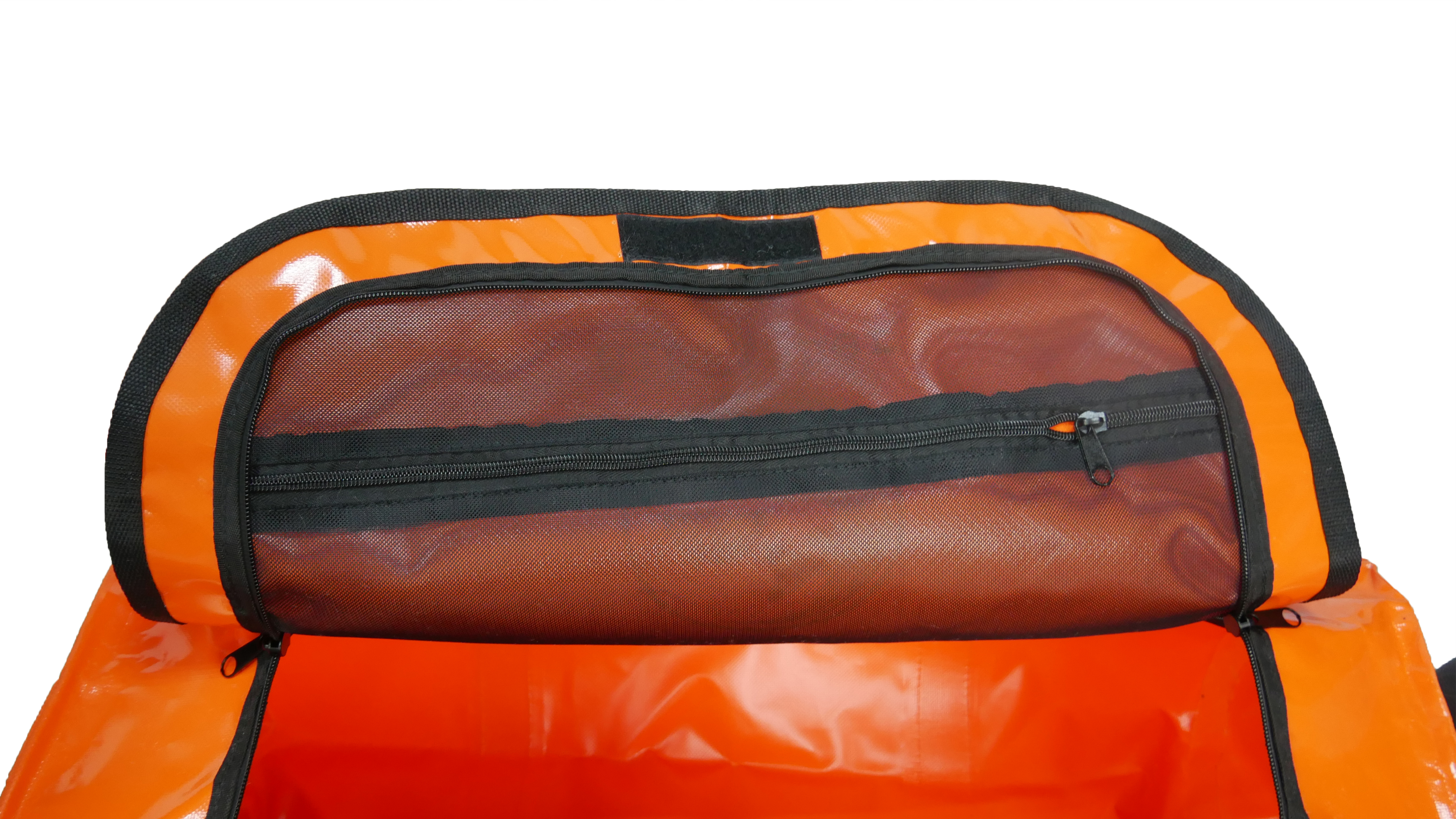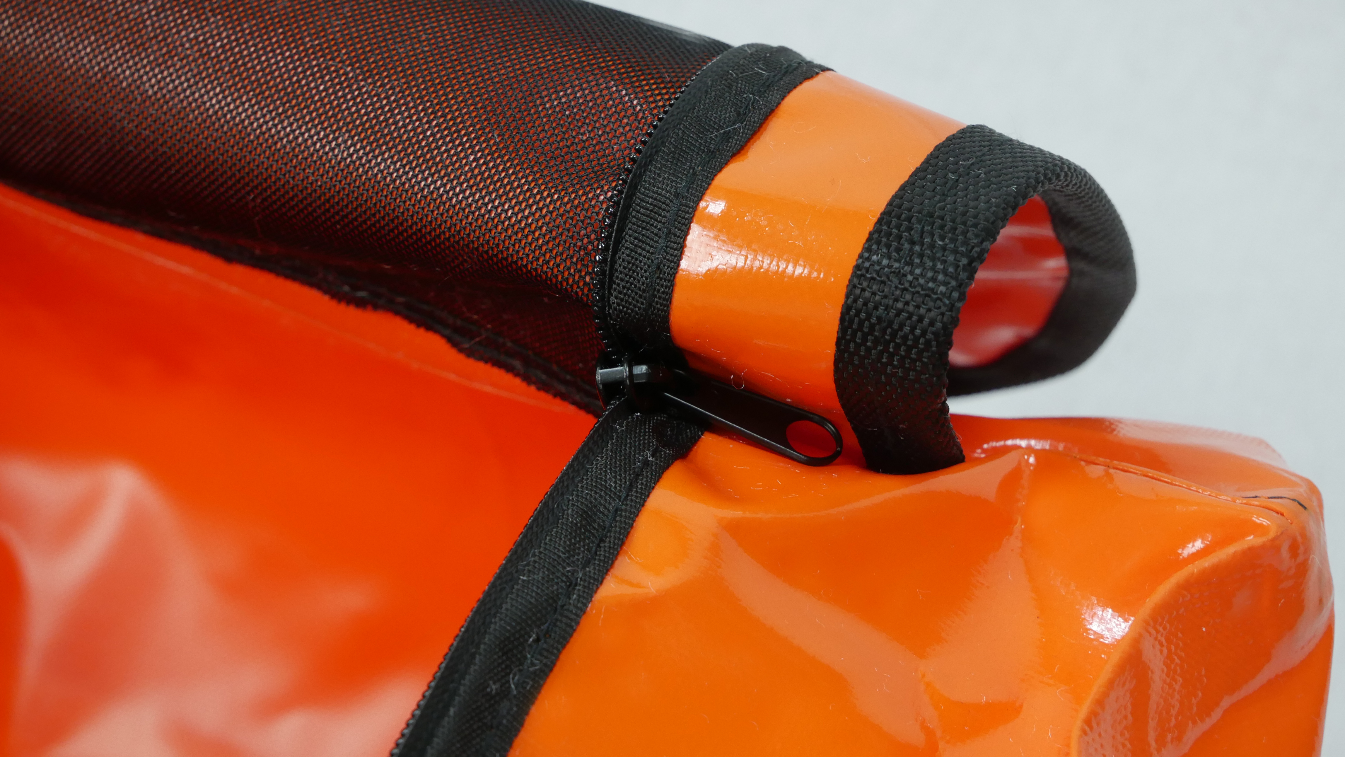 Верх сумки закрывается на водонепроцаемую молнию.